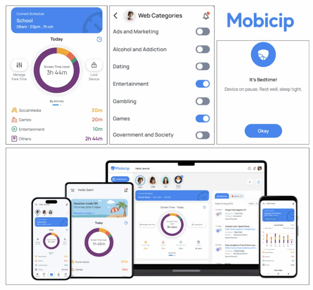 - Cross-Device Protection – Whether on a phone, tablet, or laptop, Mobicip applies the same guardrails, helping families maintain consistency across devices.