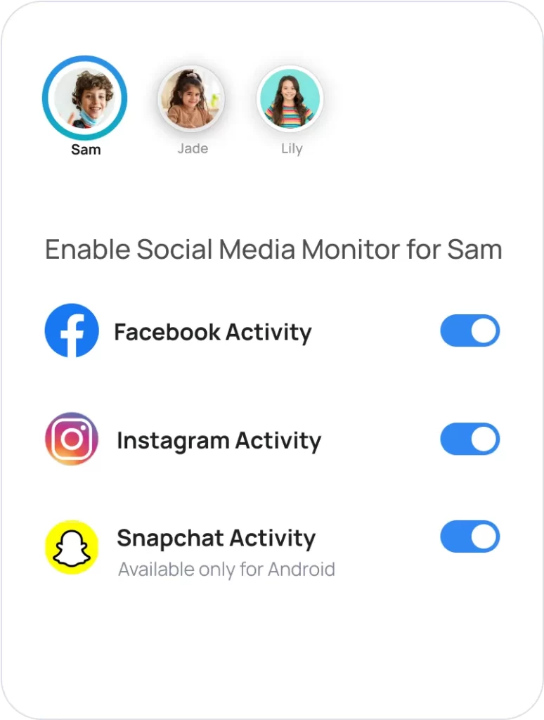 Alerts: Receive alerts for any suspicious or concerning activity on your child’s social media accounts. Being aware beforehand helps you address issues before they escalate.