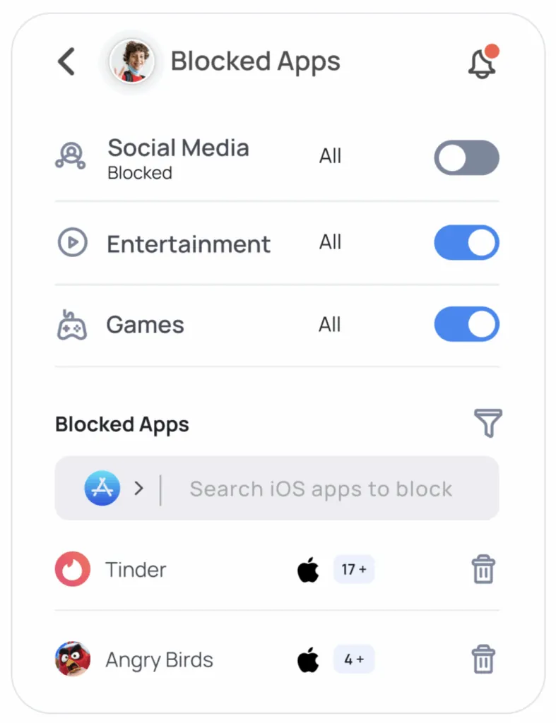 - App Blocking: Block suspicious or inappropriate apps easily.
