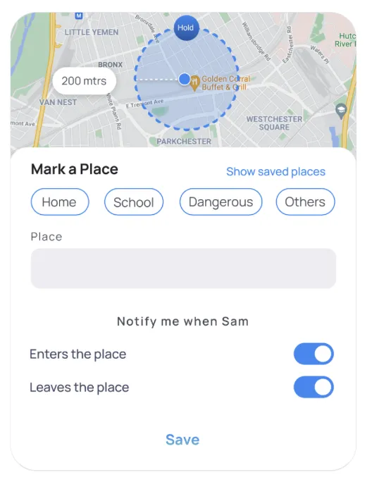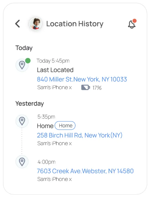 - Geofencing alerts when your child enters or leaves designated safe areas
